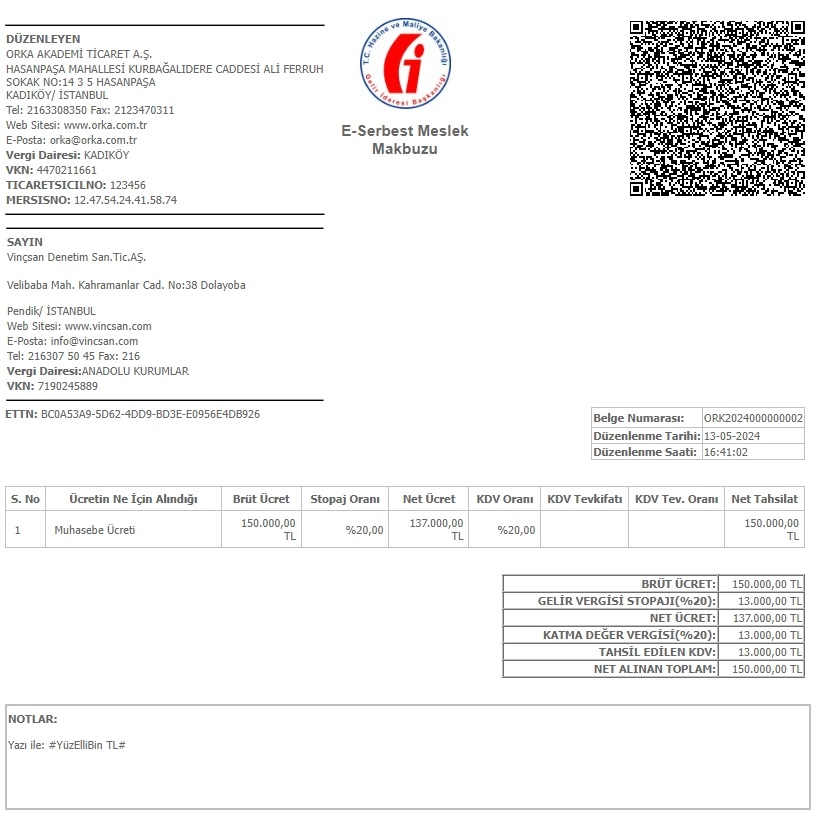 Ayrıca, mükellef gereksinimleri doğrultusunda, hukuka uygun olmak şartıyla makbuzda farklı bilgilerin yer almasını isteyebilir.